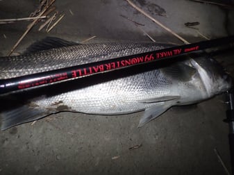 今回、リバーメインのため、ロッドはALLWAKE99MONSTERBATTLEをセレクトし熊本シーバスを狙いました。結果、サーフェスウイング147Fで2バイト、かっ飛び棒130BRで60半ばのシーバスをキャッチすることが出来ました。