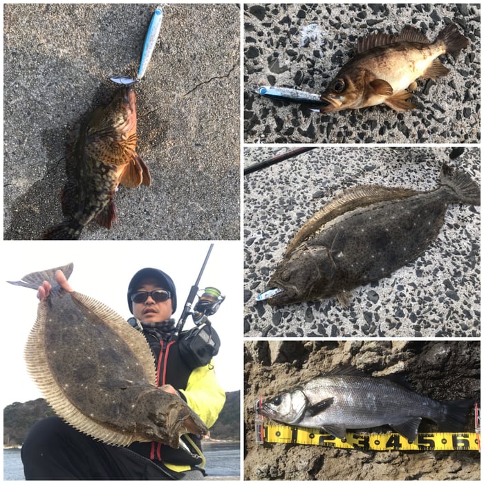 そんな中、夕方少し時間が出来たので、ヒラメ、マダイ狙いで内海の湾奥に行ってきました。鳥山が出た後、多少落ち着いた状態でぶっ飛び君の背黒メッキをキャスト!ボトムをとってスローに引いてくると、ドス!とヒット!狙い通りヒラメをキャッチすることができました。