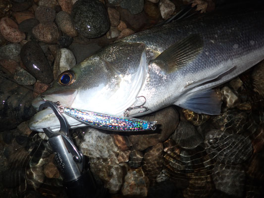 他社のシャローランナーで1バラシからの2バイトを得るも、なかなか口を使ってくれないシーバス。