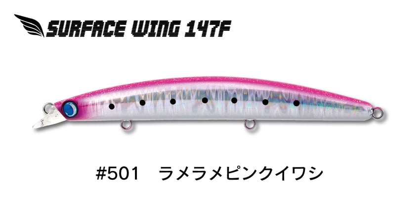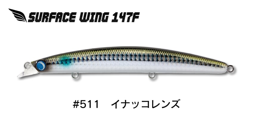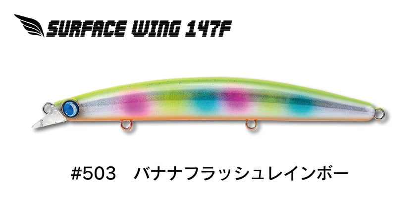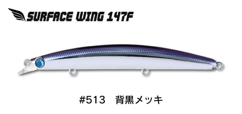 テスト段階から圧倒的な釣果を叩き出してきたサーフェスウィング147Fは、抜群の飛距離と喰わせのアクションを両立したパイロットミノーとして全国各地で愛用されている。最も多用される水面下60~80cmのパイロットレンジを抜群のレンジキープ力とフィッシュイーター達の本能に刺激するシンクロウォブンロールアクションで泳ぎ切る。もちろんロウディーシリーズ譲りのナチュラルダートも継承。飛距離とアクションを共に最大限まで高めることにより様々なシチュエーションで大活躍する。