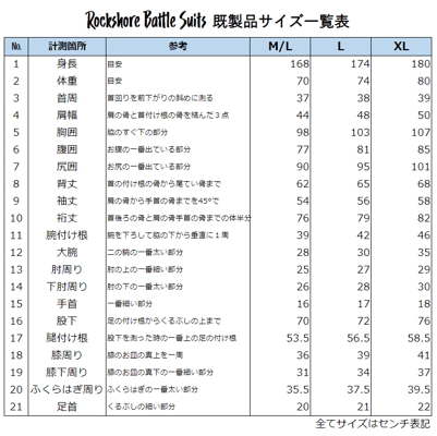 ロックショアバトルスーツ ML / L / XL / フルオーダー
