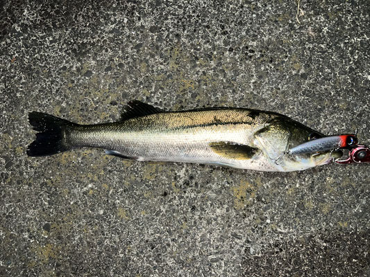 あまり引きが強くなく上がって来たのはサイズはそれなりにあるんですがガリガリに痩せたシーバスでした。